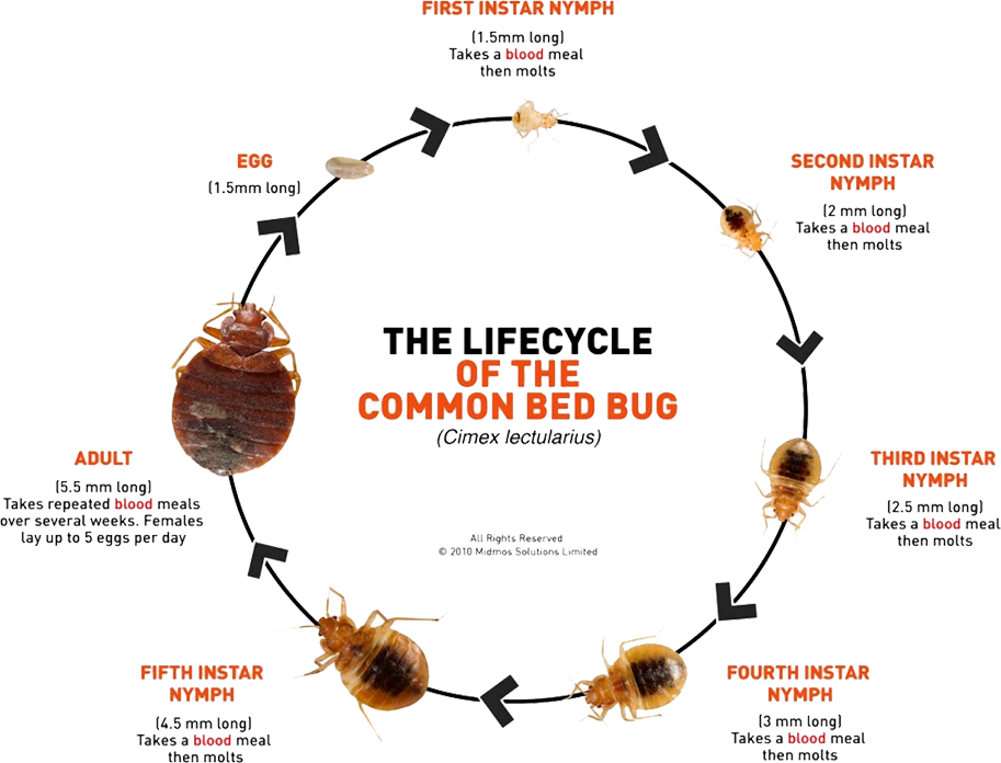 Bed bug colors can range from nearly white after they molt, a light tan, a deep brown, to a burnt orange.